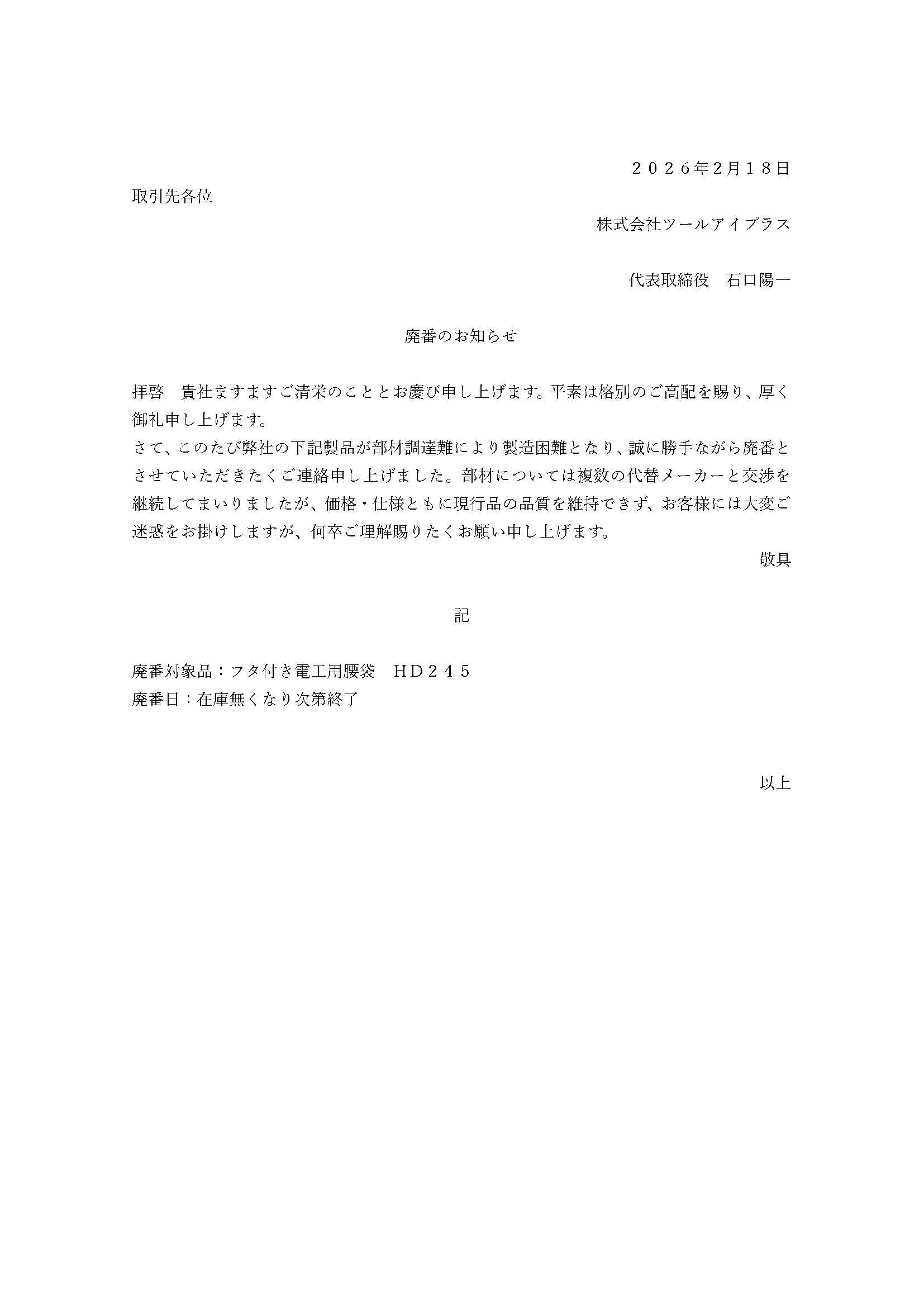 ながらくご愛顧を賜りました、商品の製造供給が困難となりました。